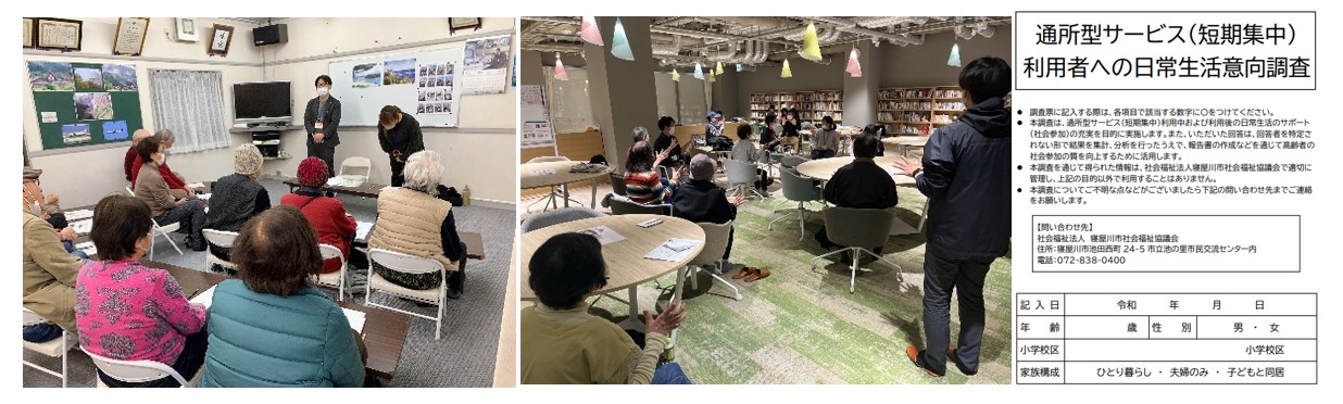 地域の様々な集まりや支え合い活動の情報、活動の担い手の把握を行うと共に、高齢者が抱えている日常生活上での困りごとについてアンケート等を活用し地域の様々な声を集めています。
